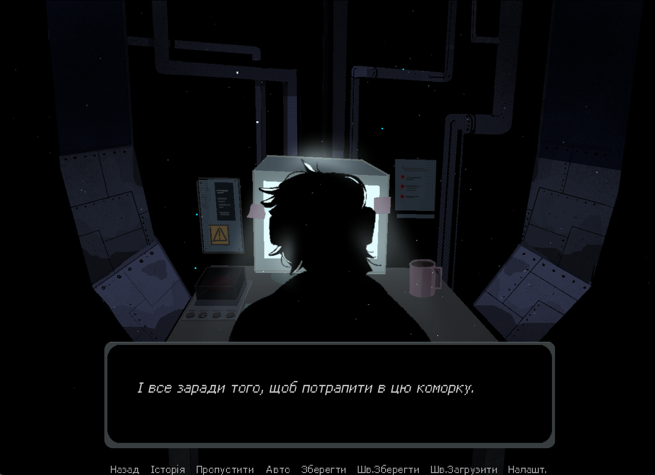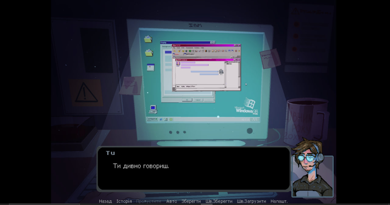 Головне у візуальних новелах візуал, правильно? На мою думку правильно і він тут чудовий. Витриманий ретро стиль в усьому, правда тільки не знаю чи грає роль, що обрана естетика саме ретро. Можливо хотіли обіграти тему "шепіт" таким чином? Шепіт минулого? Або можливо стара комп'ютерна естетика краще підтримує моторошну атмосферу (припускаю). В любому випадку це добре відображає також можливий заробіток ГГ, що має сенс, мені здається, враховуючи тему самої новели.